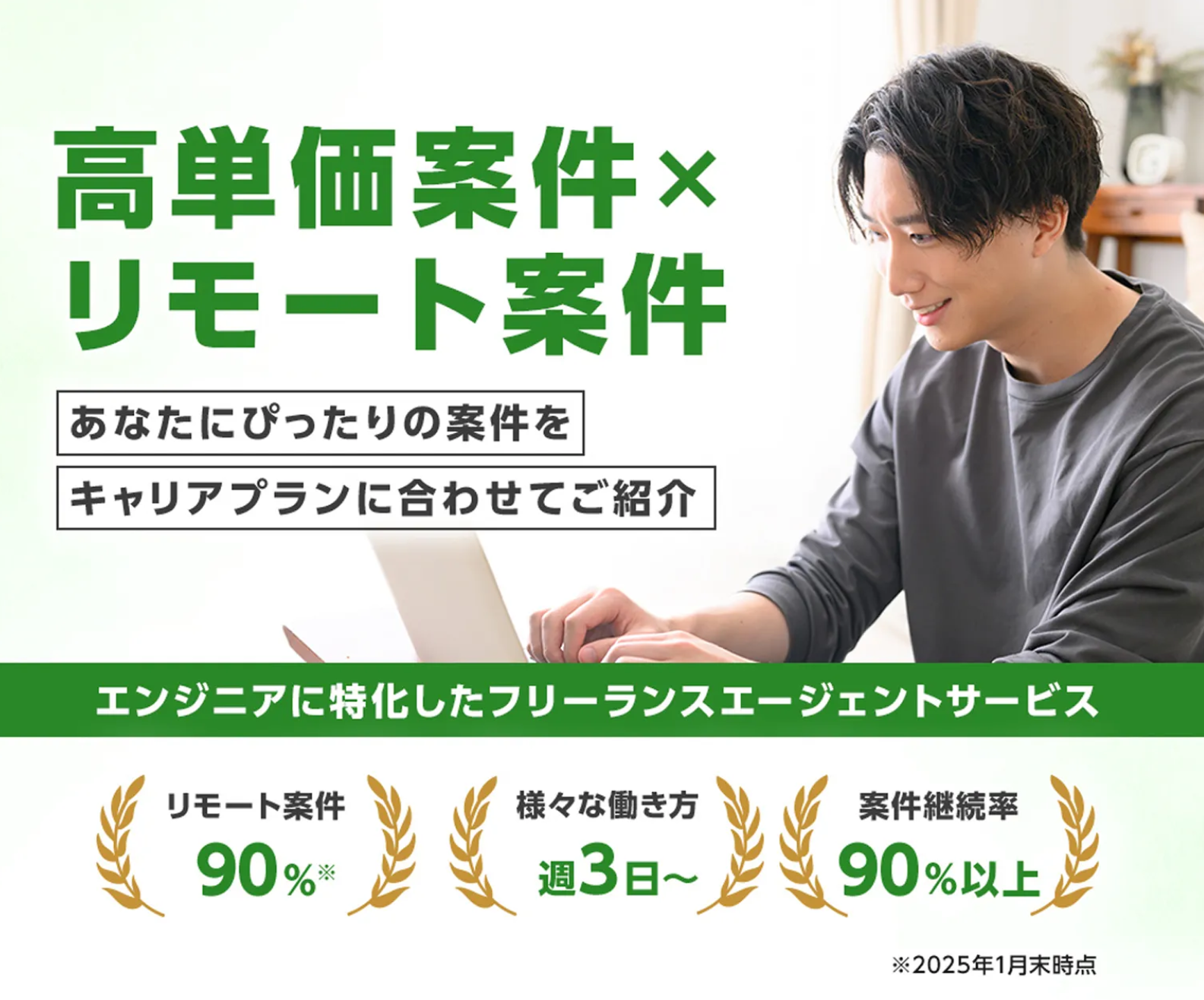高単価案件と手厚いサポート体制で、経験豊富なエンジニアのキャリアアップを全面支援します。